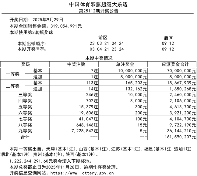 超级大乐透游戏第25112期开奖公告